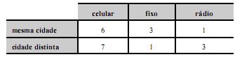 Considere que, em uma nova missão, o preço das ligações tenha passado a depender da localidade, mesma cidade ou cidade distinta da de origem da ligação, e do tipo de telefone para o qual a ligação tenha sido feita, celular, fixo ou rádio. As tabelas abaixo mostram quantas ligações de cada tipo foram feitas e o valor de cada uma: